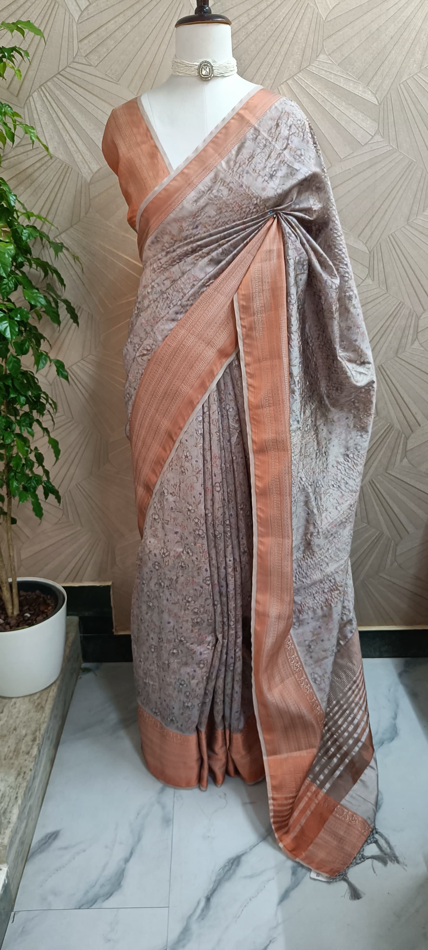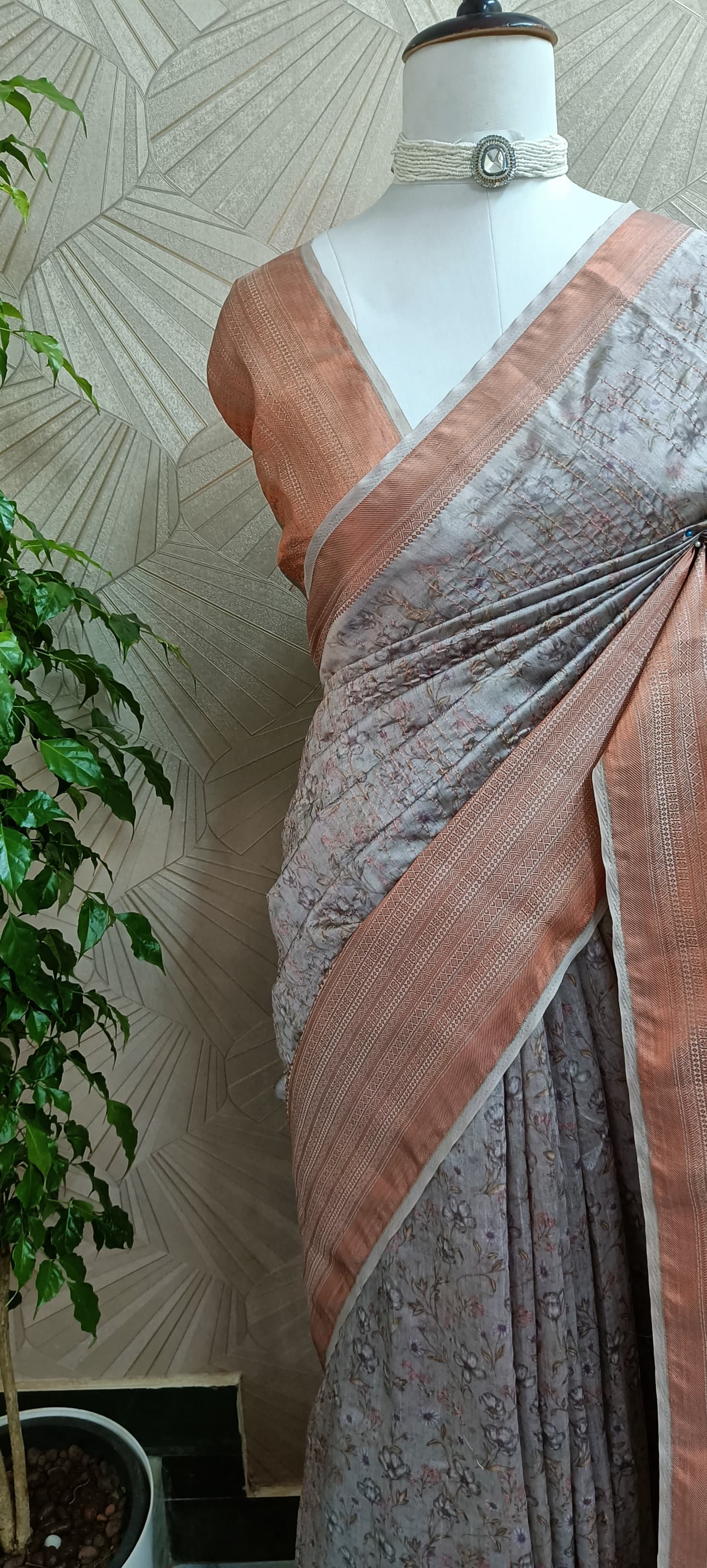 Design : Mocha Brown Base Adorned with Delicate Self Woven Floral Motifs.