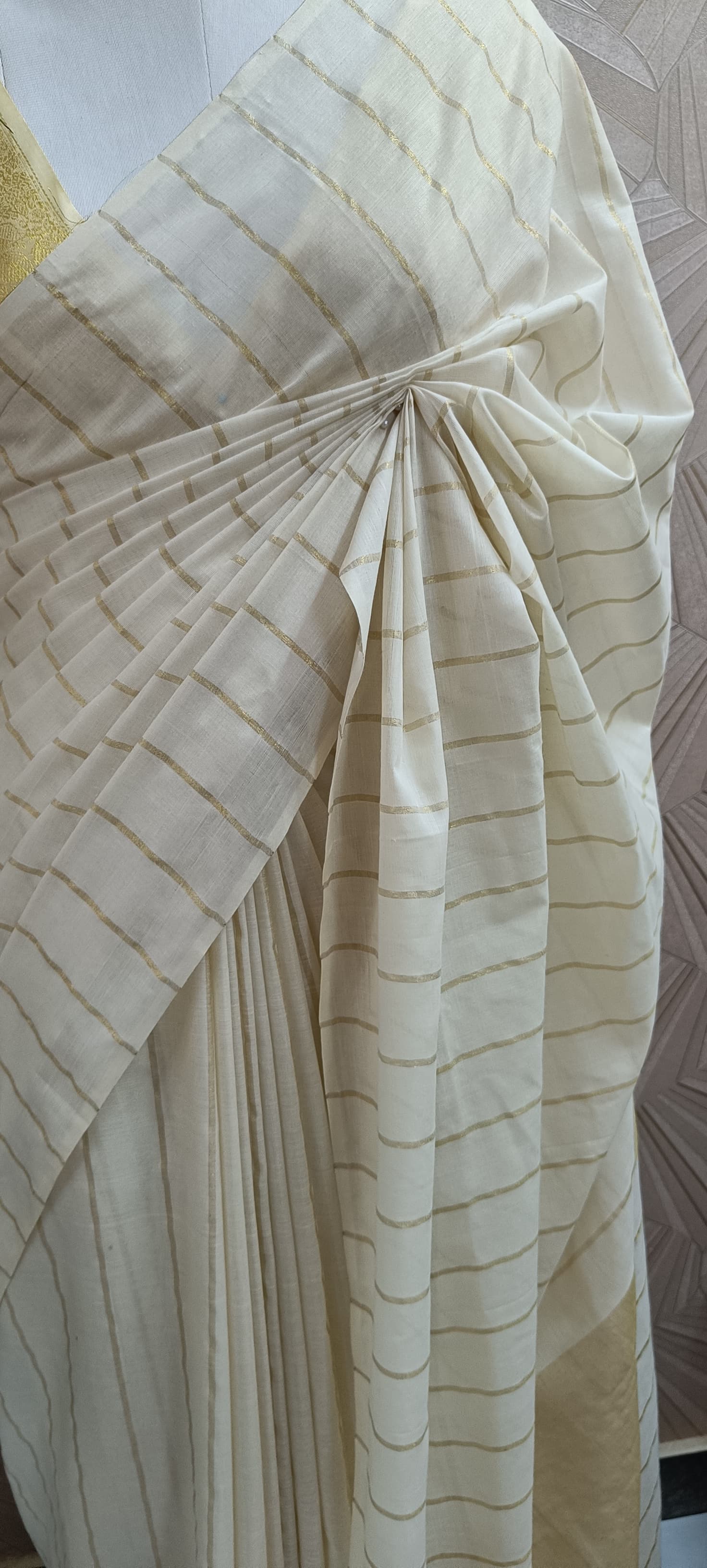 Kasavu Cotton Saree with Subtle Golden Stripes