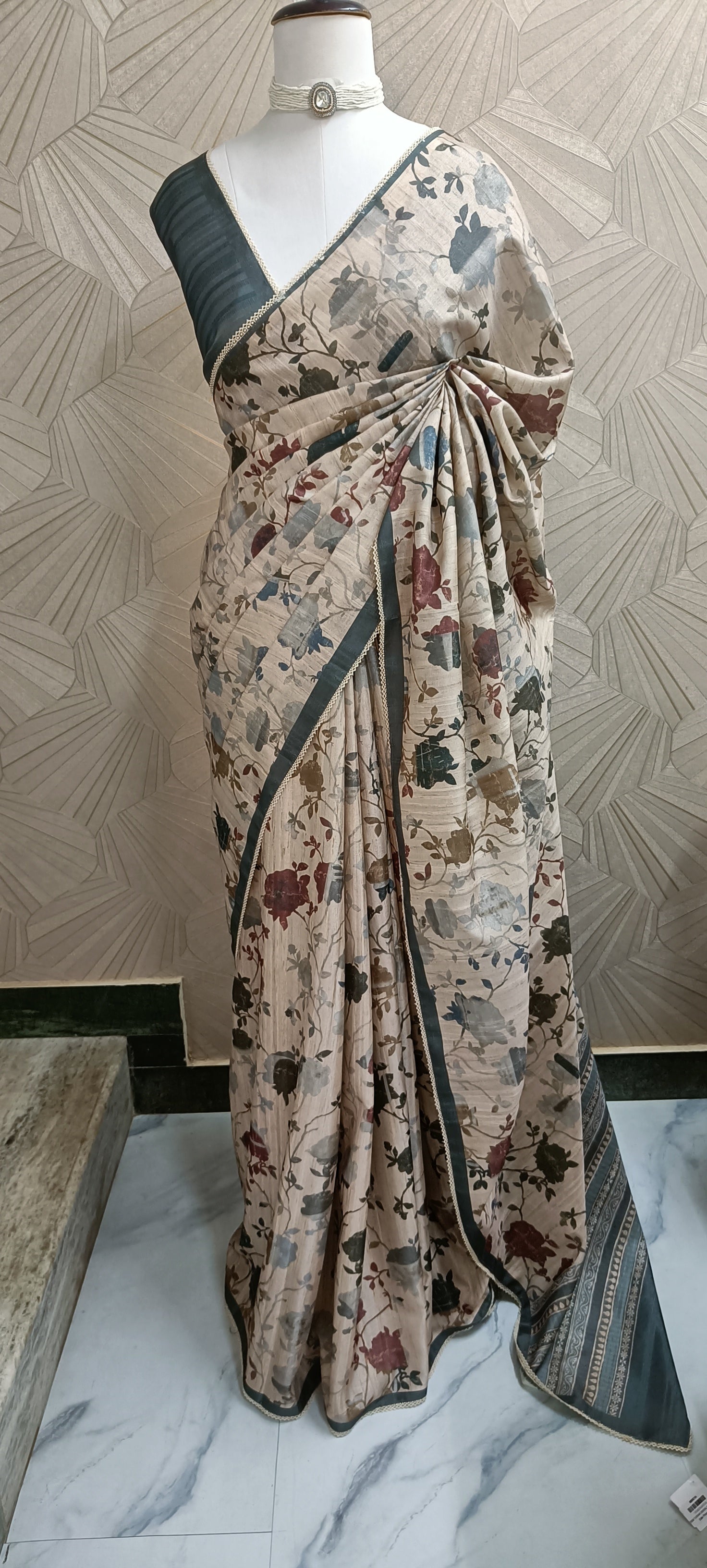 Design : All-over Floral Digital Print with Woven Border and Striped Pallu.