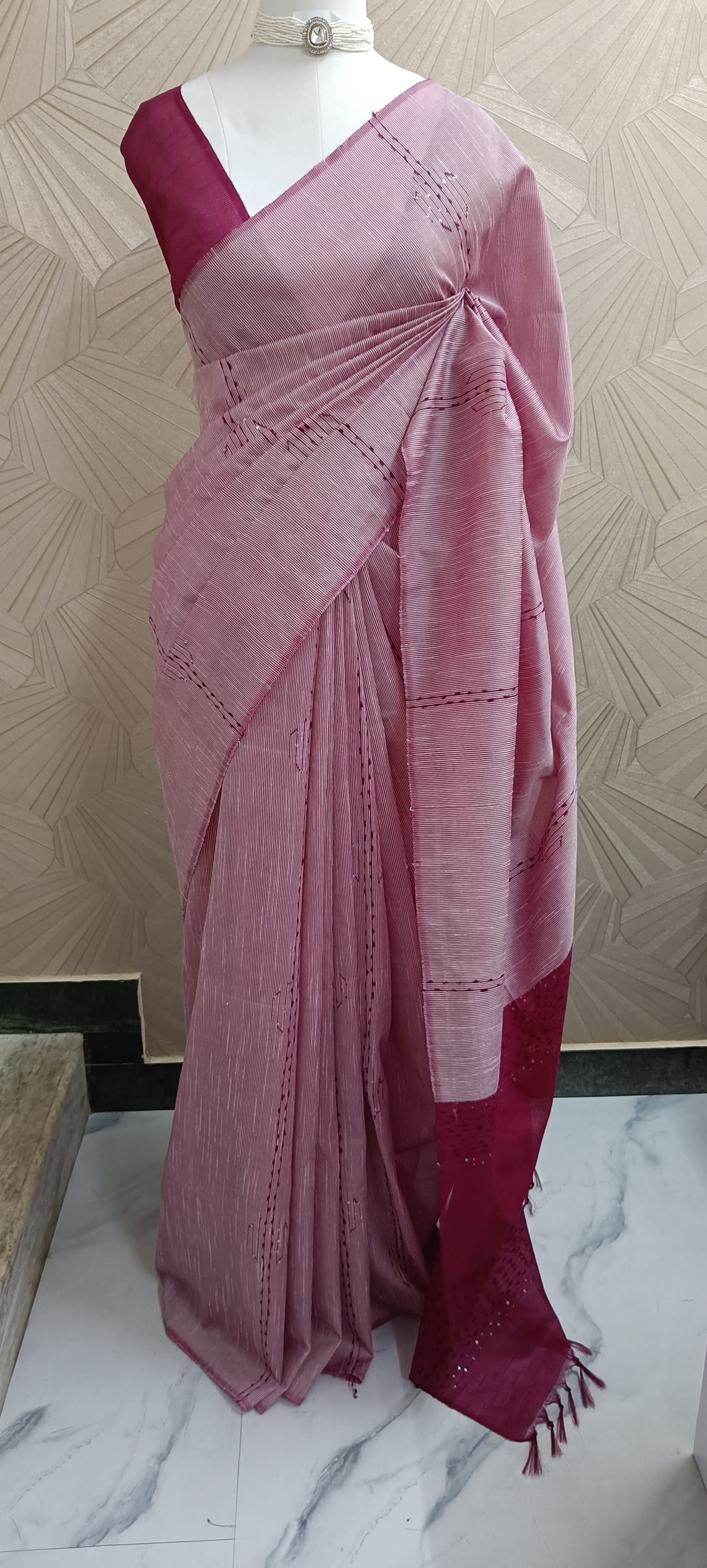 Tussar Silk Saree with Stripe weaving - Double Shade