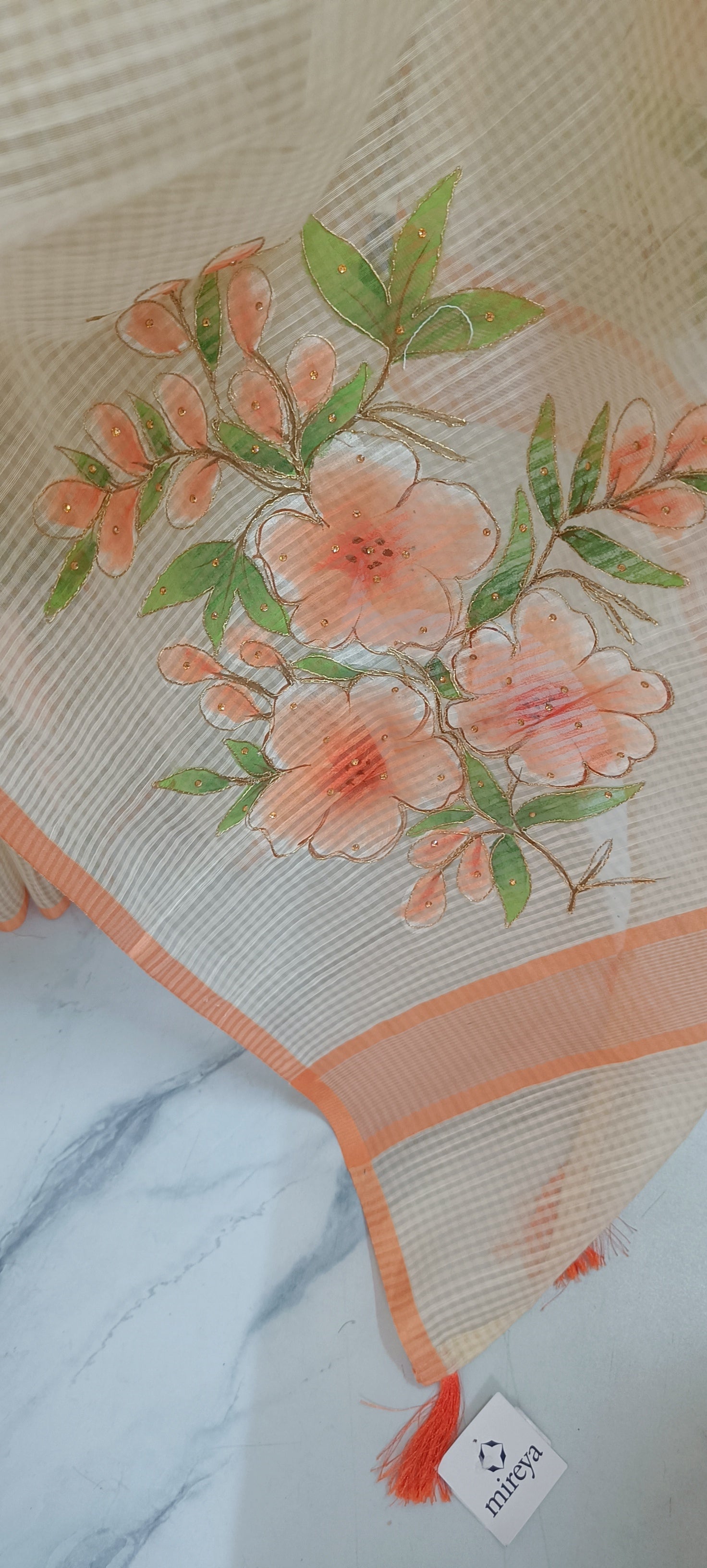 Soft Elegance in Cream - Hand Painted Floral Saree