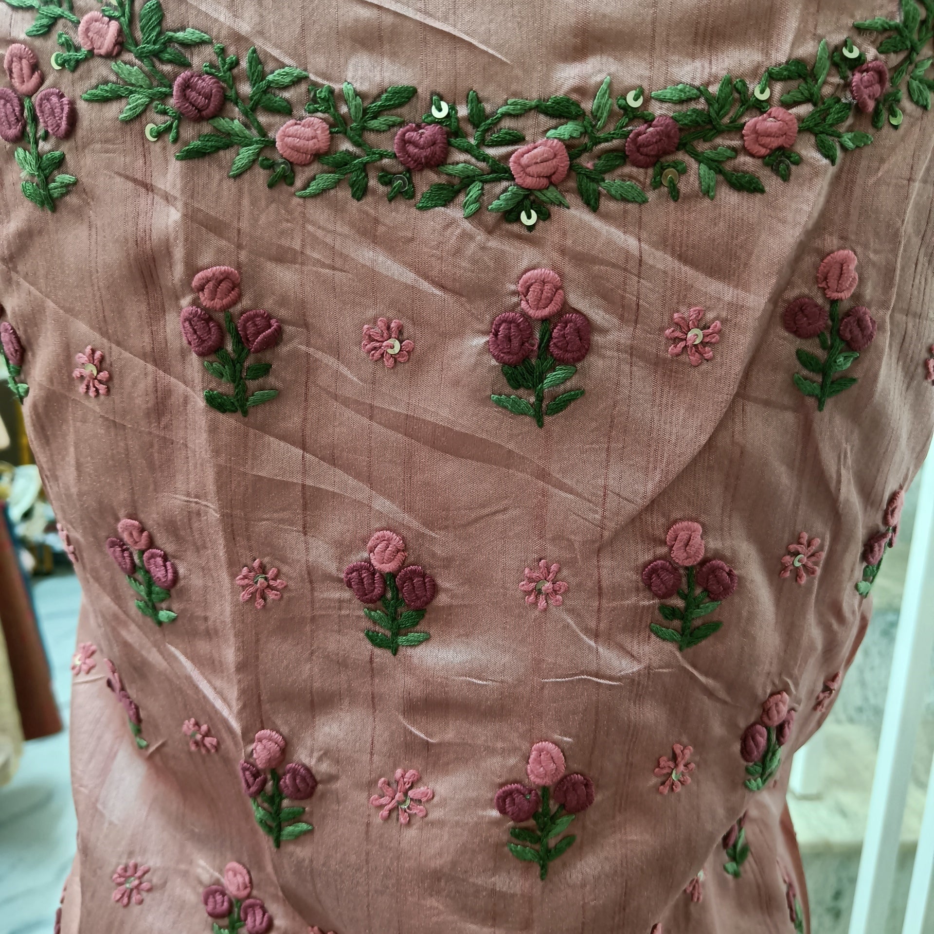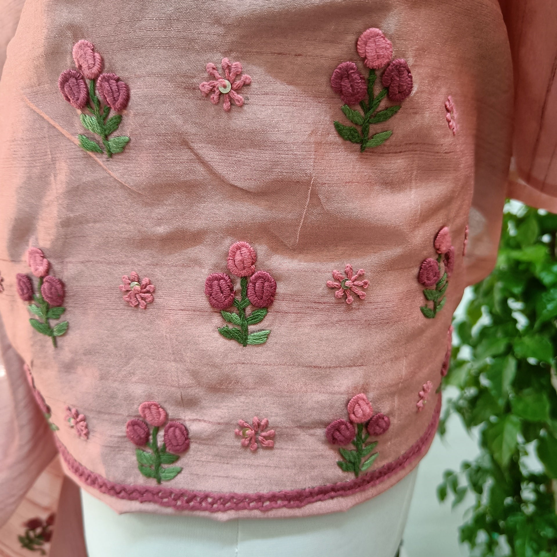 Design : All over subtle floral weave with delicate thread detailing